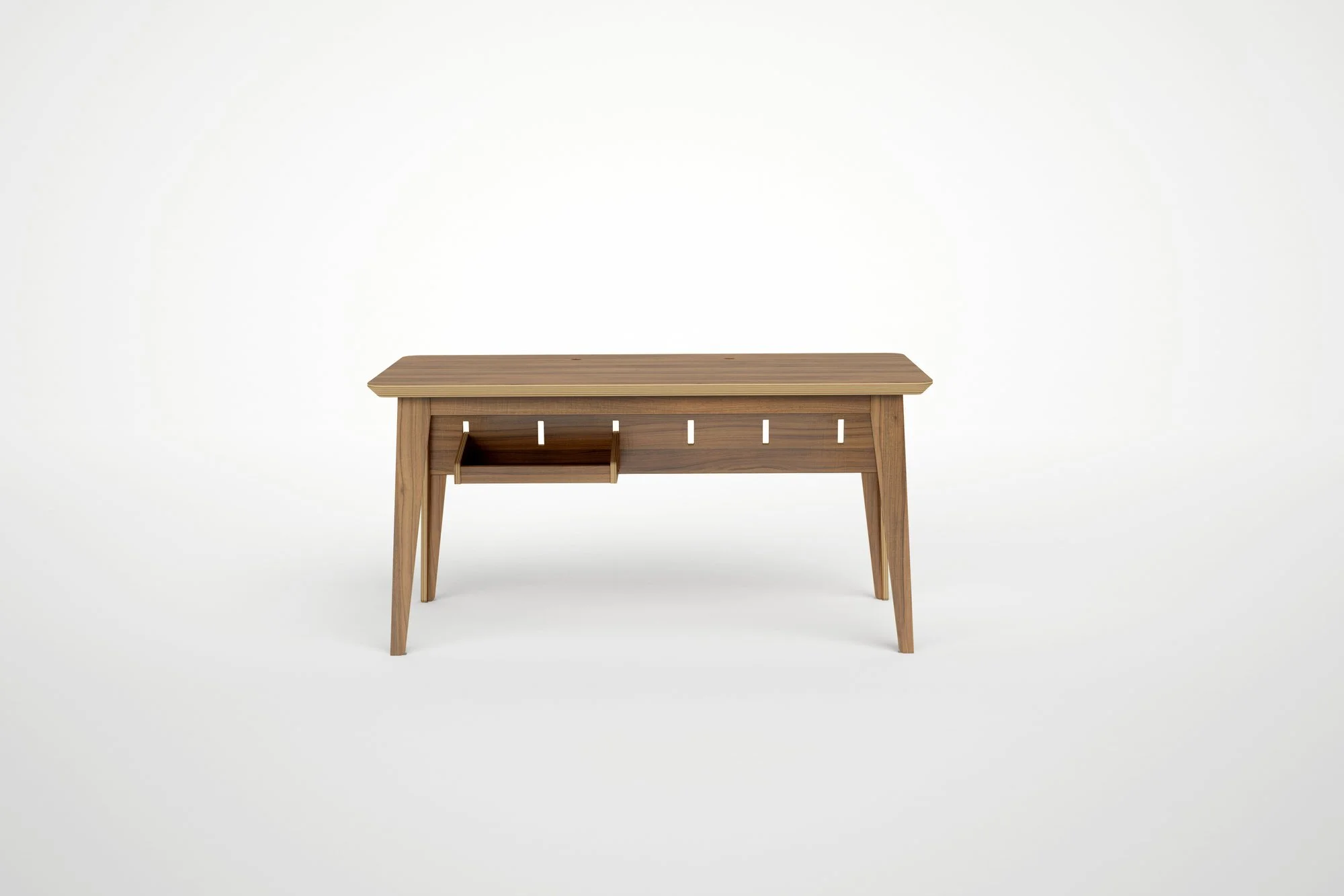 The standard desk is a sleek 60” long and 29” wide that allows you to spread out while working. A chamfered edge runs along the desktop providing a depth to the desk. Fine angled legs give you complete access below the desk. Wire management holes increase functionality of the desk making sure wires do not take over the desk. Standard desk can also be used as a kitchen table once you no longer need to work from home extensively. A mid-century modern inspired design meets our practical minimalist approach for a sleek and functional desk.